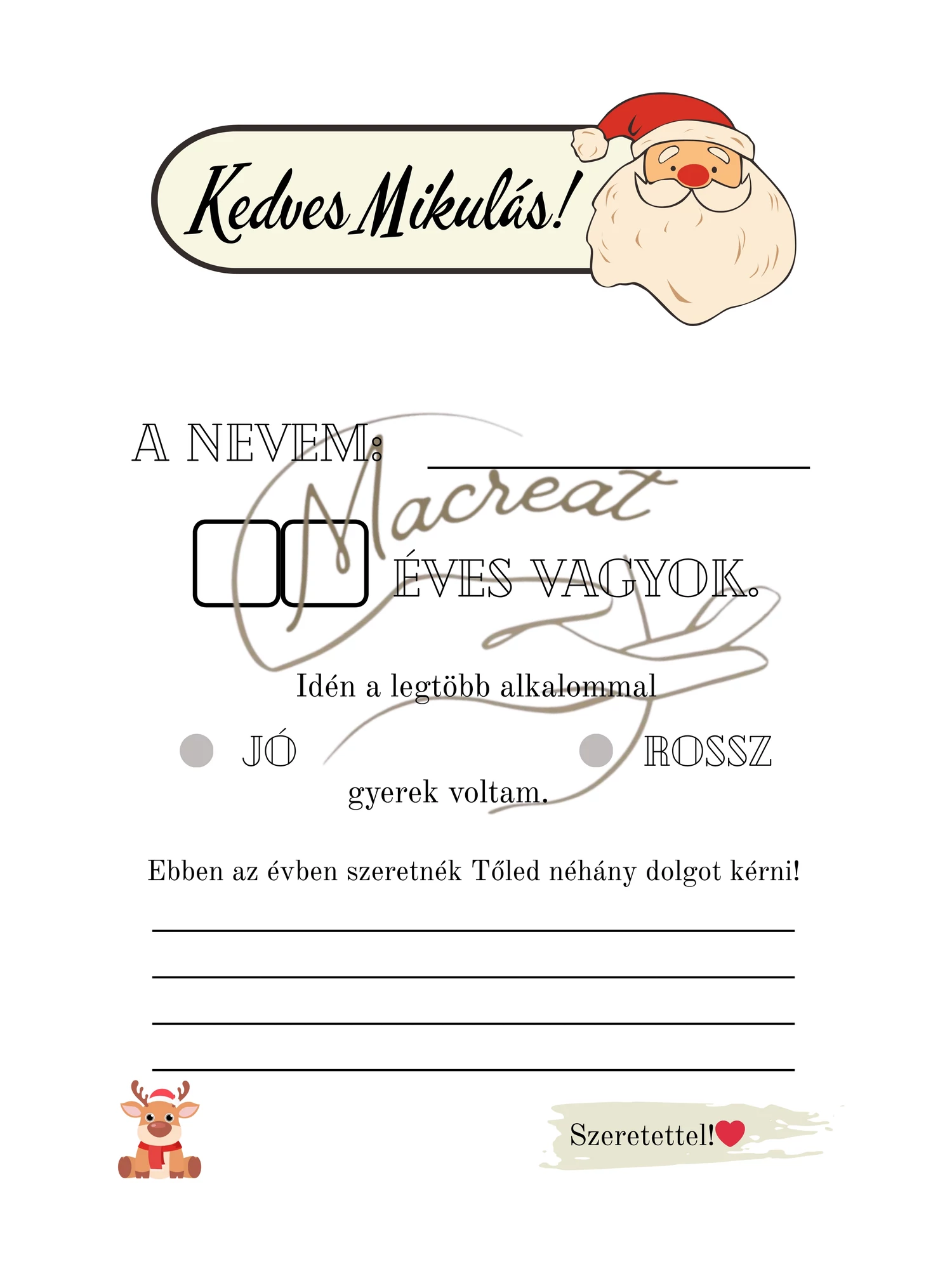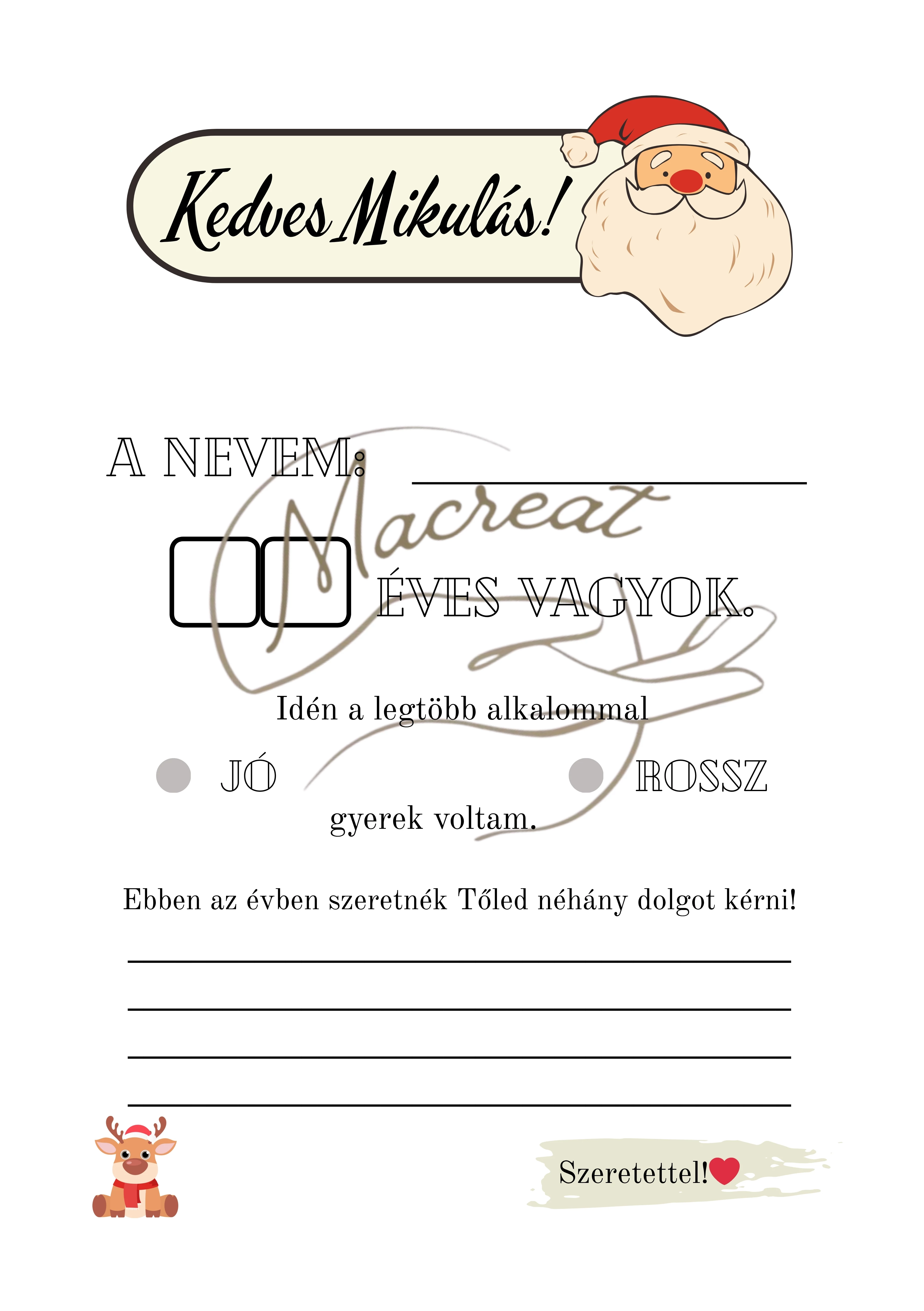 Lepd meg gyermekedet egy varázslatos Mikulás levéllel, melyet együtt kitöltve tudtok “elküldeni” az Északi sarkra.